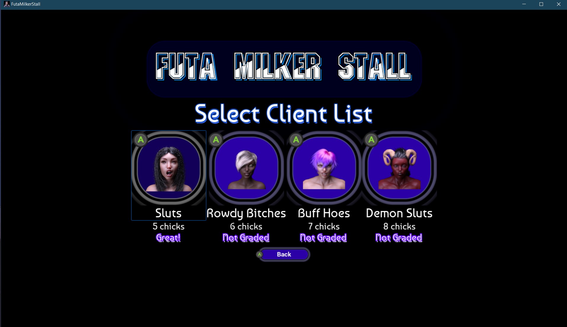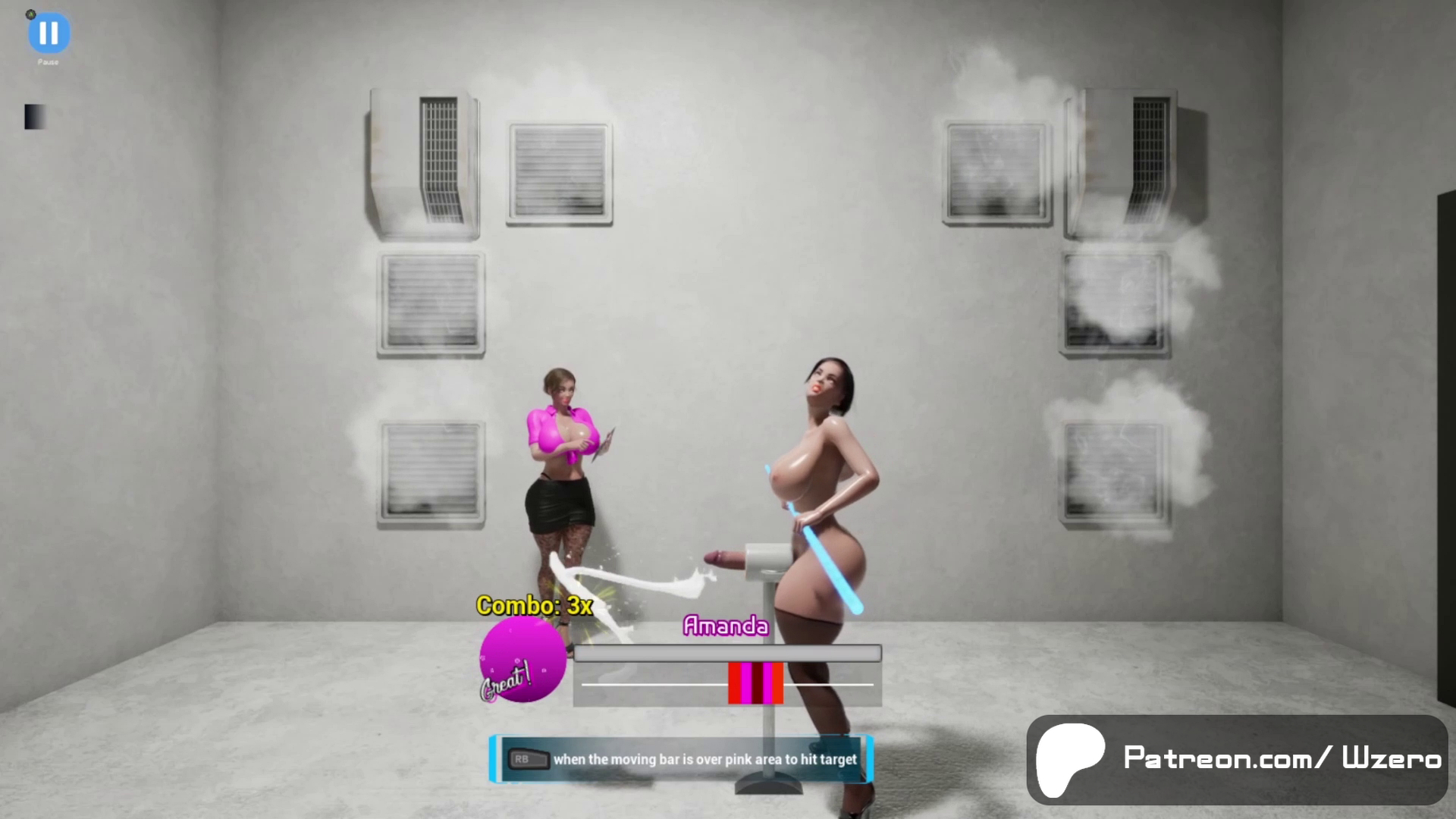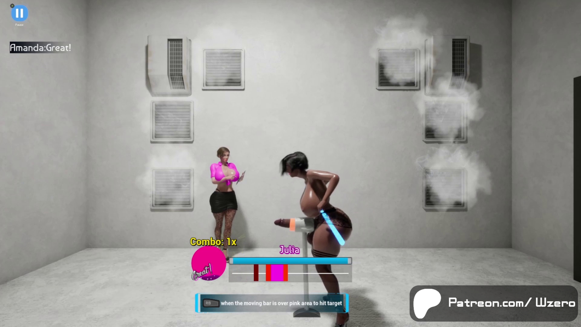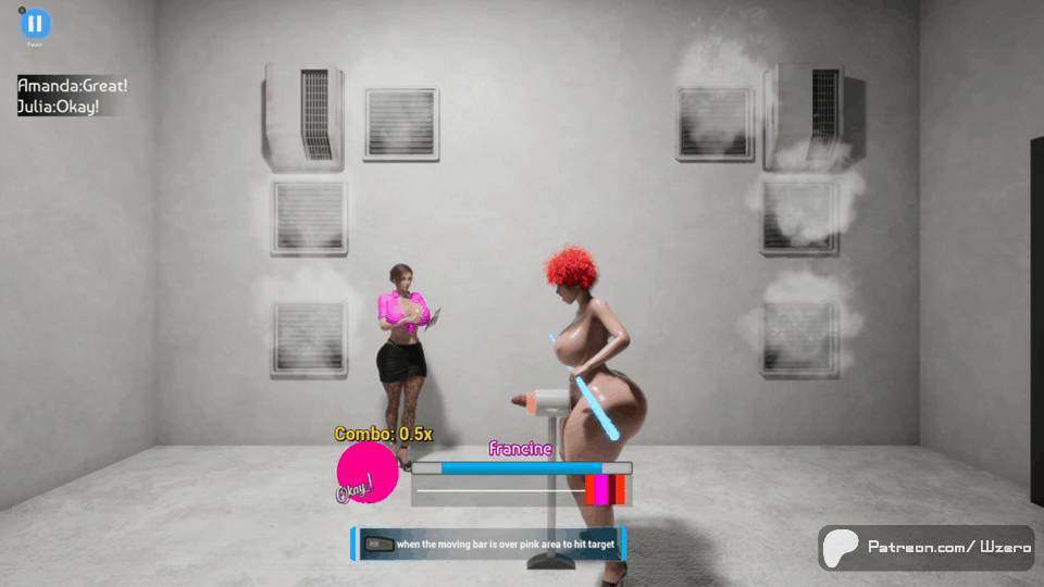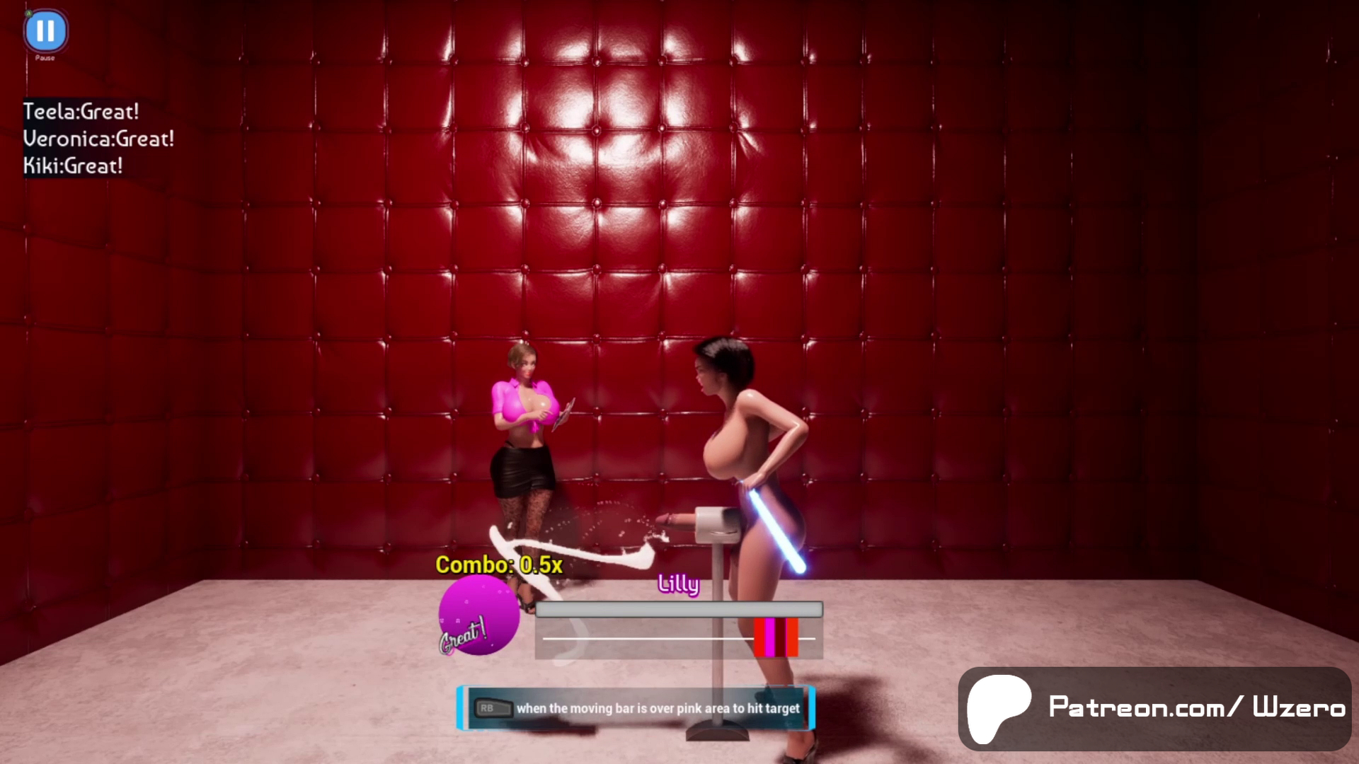 Satisfy the queens clients by using a reaction based timed hit mechanic and filling up the gauge. Each client get a grade and list gets harder as you progress. Complete a list of clients to move on to the next.