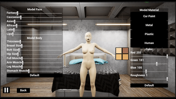 Ok, I played with the game for a bit and I really like the different metallic skin textures for the female model. I love how thicc you can make the female model too. I really wish more games would implement metallic skin like this :( Anyway, are there any plans to add more to this game? Head tracking, more poses, more positions, sounds, and being able to make the ghost male into a normal male would be great!